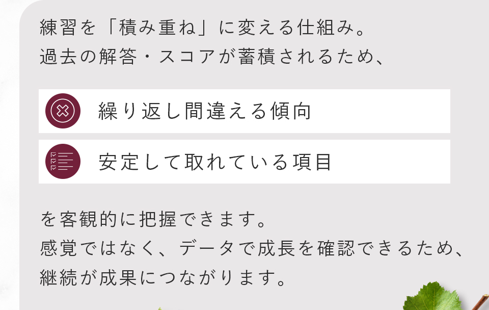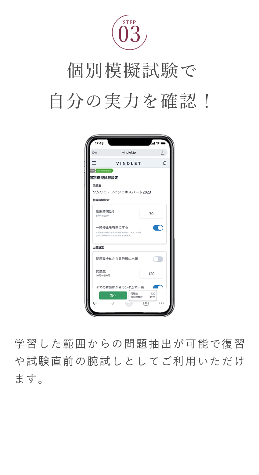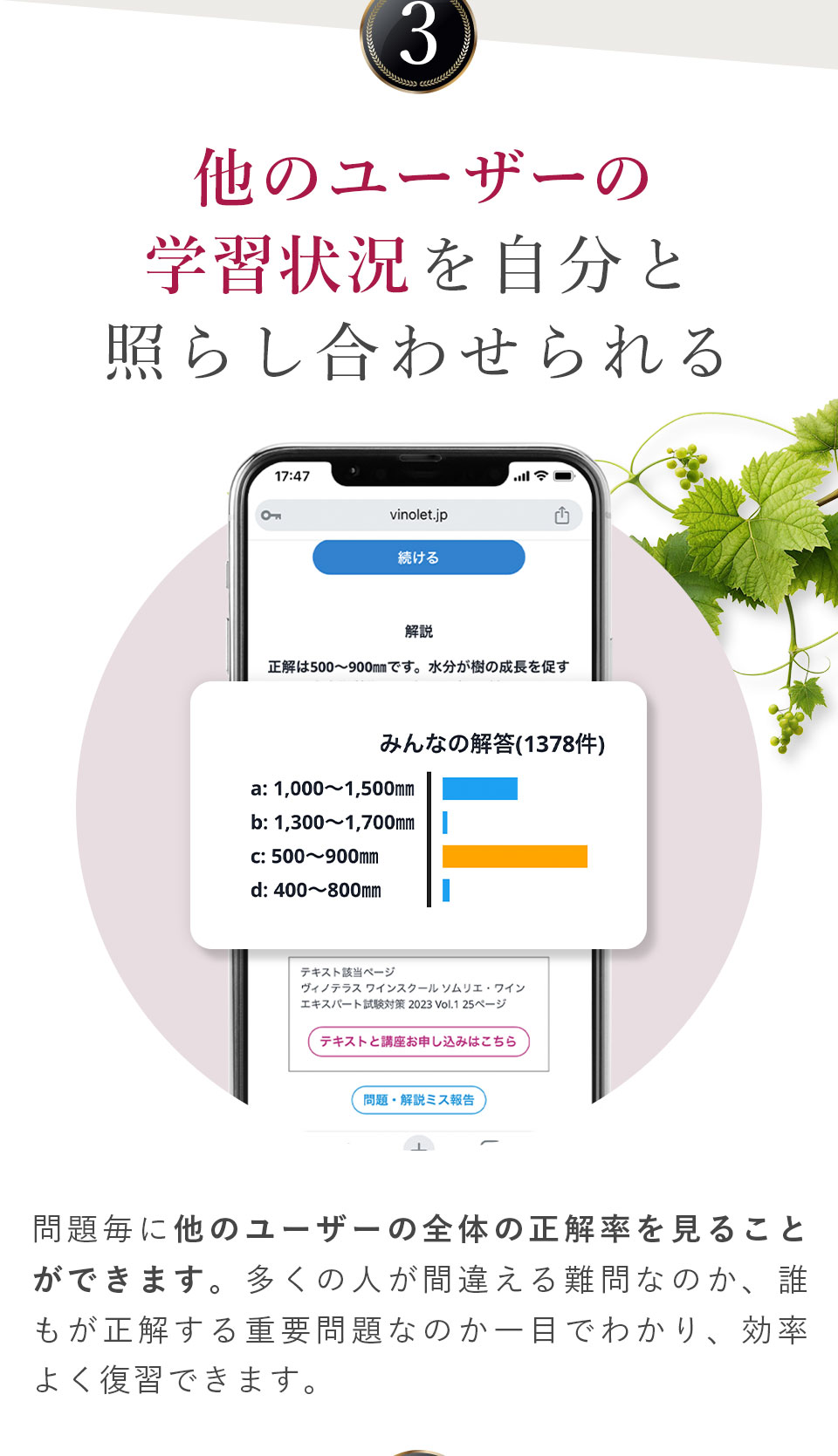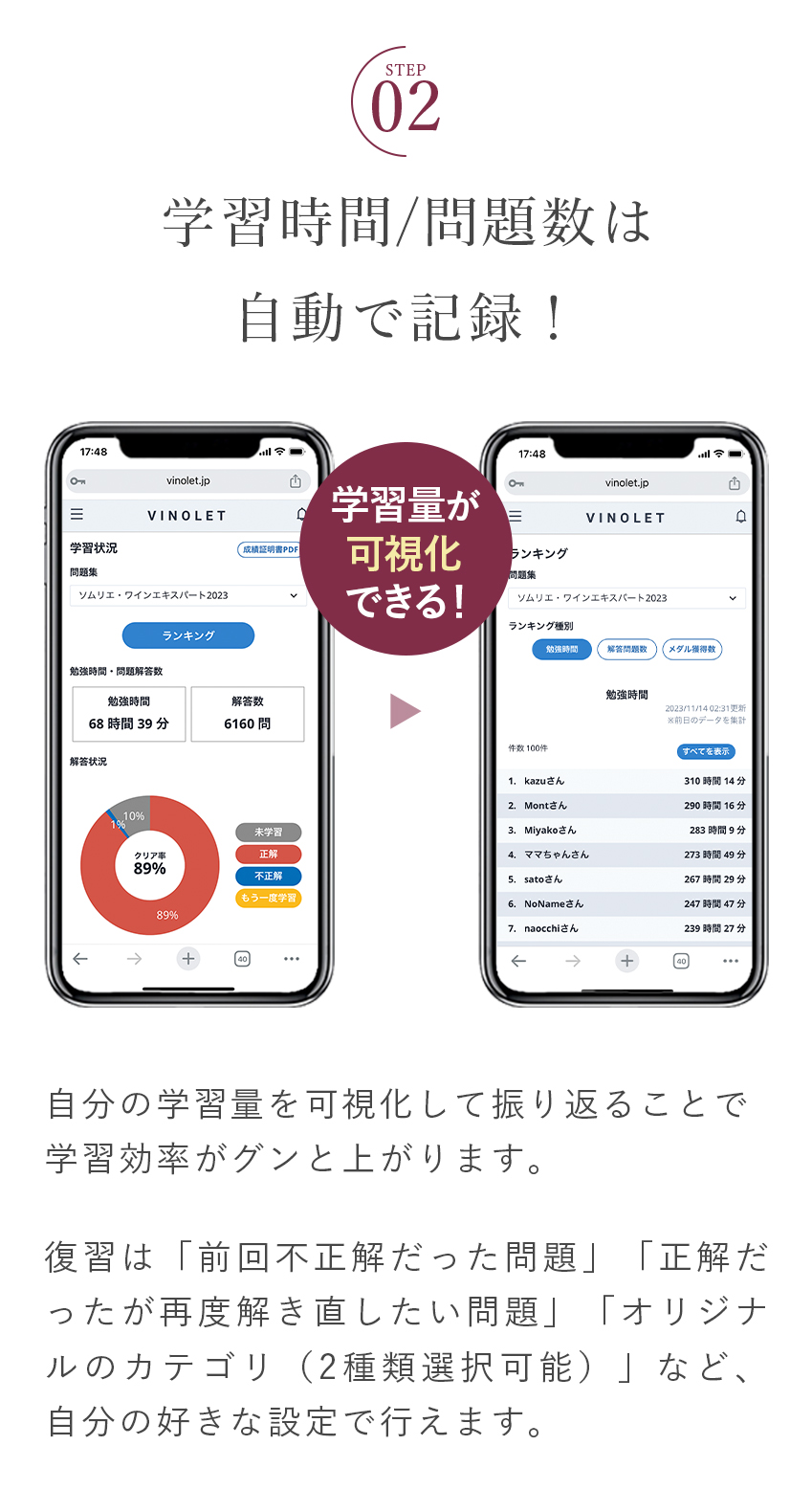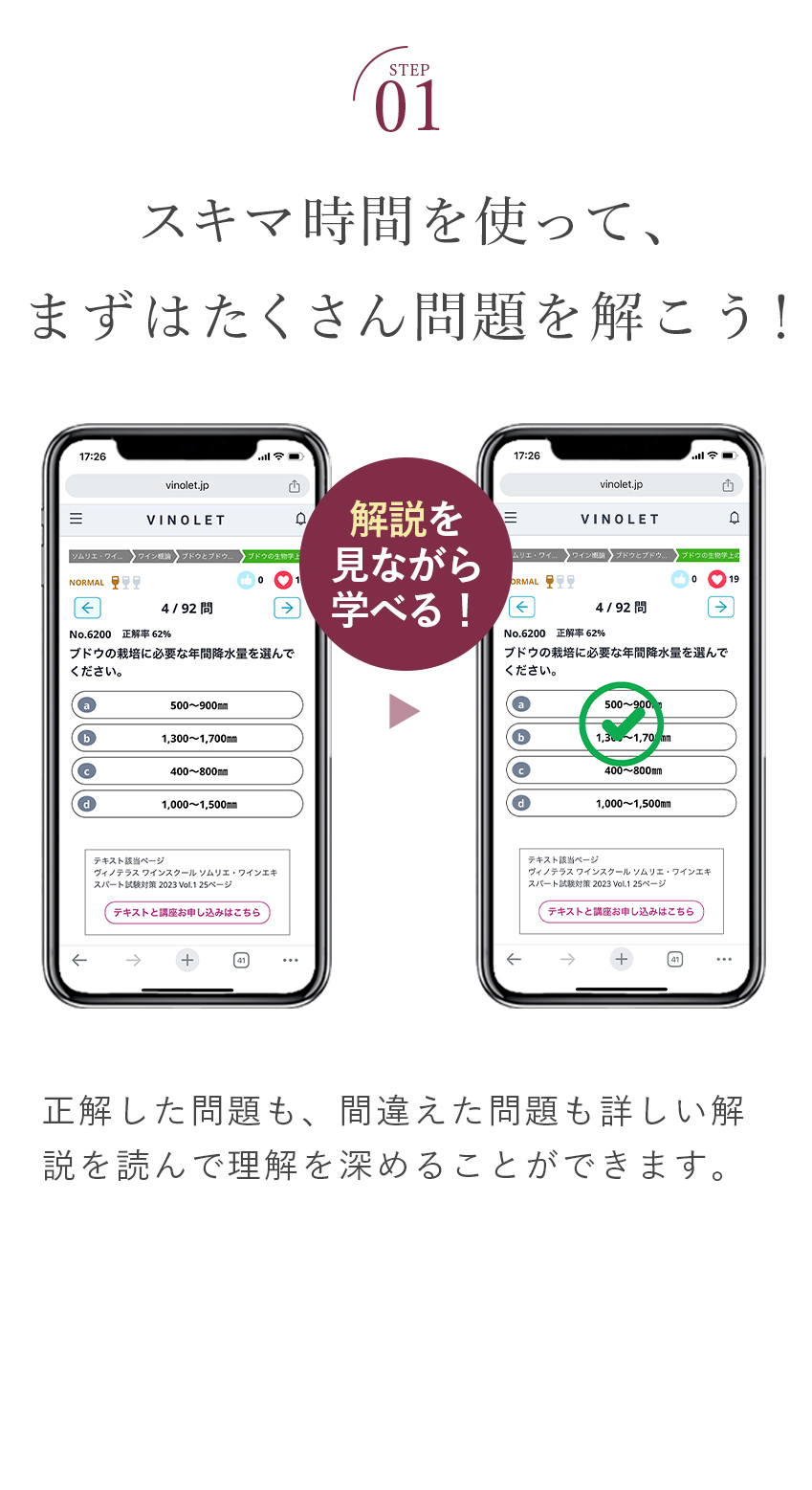 WEB問題集アプリVINOLETとも連携しており、効率的な学習が可能です。