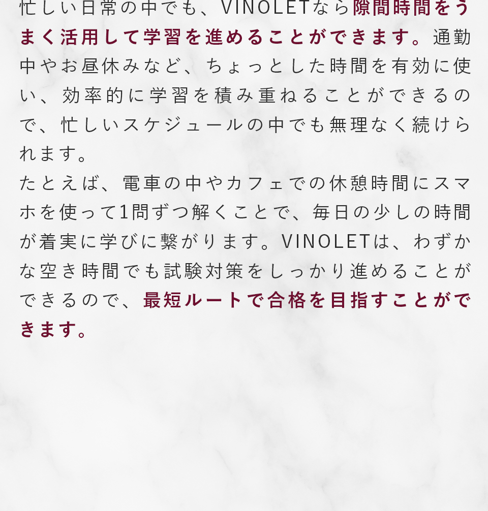 VINOLETでしかできない、手軽で効率の良い学習を体験しましょう。