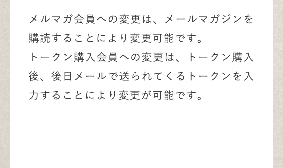 ※基本的には「メールマガジン会員様」「トークン購入会員様」が対象になります。