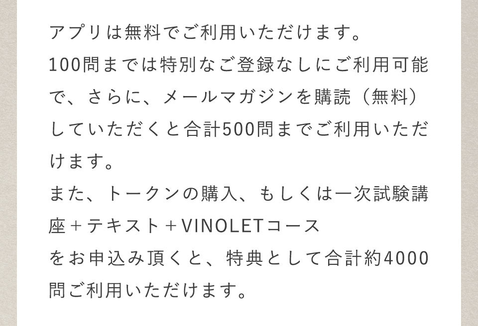 試験対策WEB問題集アプリ「VINOLET」は、厳選した約4000問の